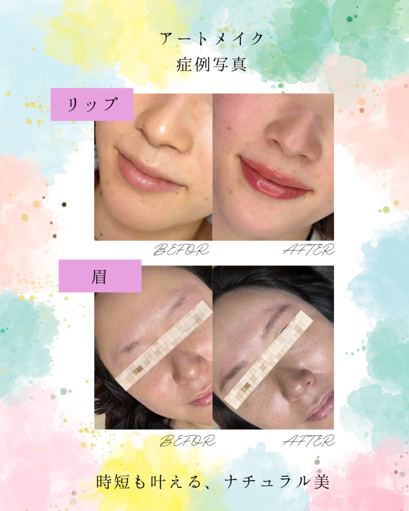 ナチュラルな仕上がりで化粧の時短にもなるアートメイクを安心価格で提供いたします✨ ご予約は直接お電話いただくか、WEB予約(枠に限りがあります)からご予約ください🙇